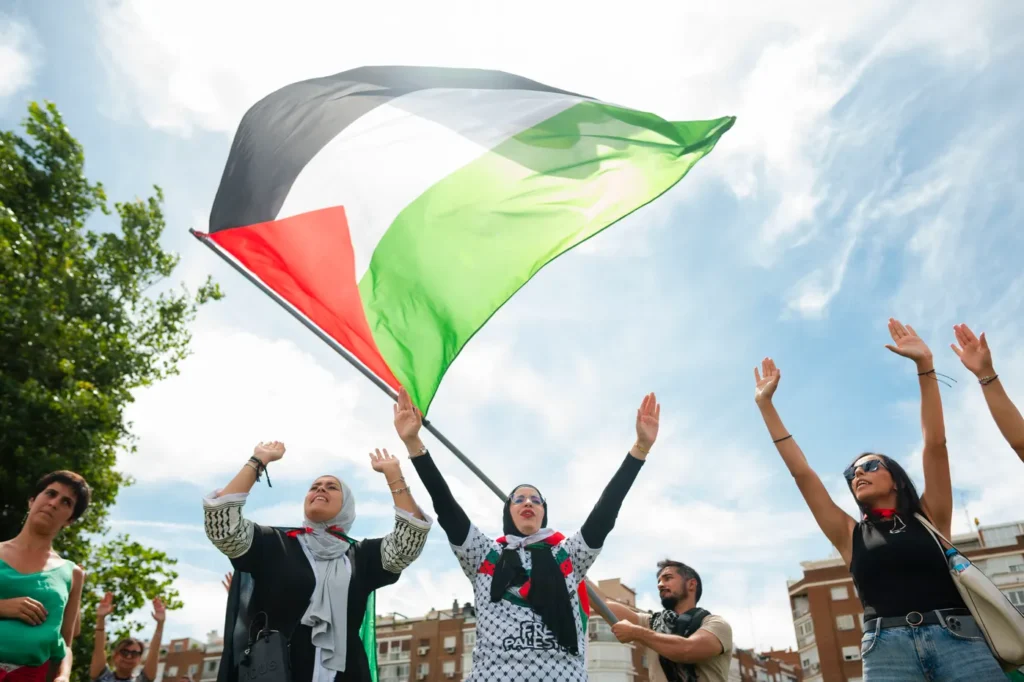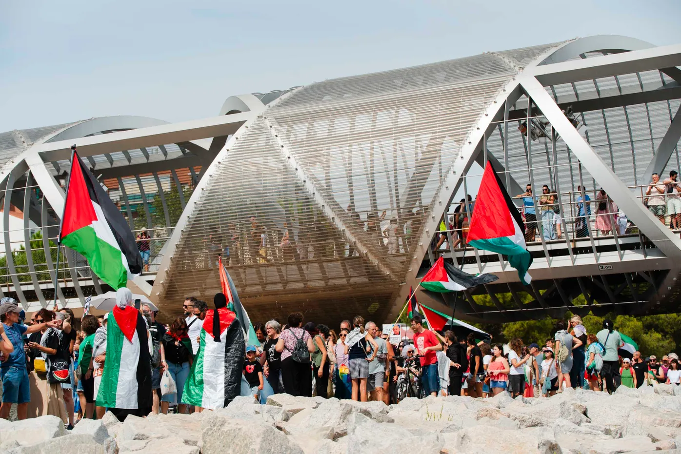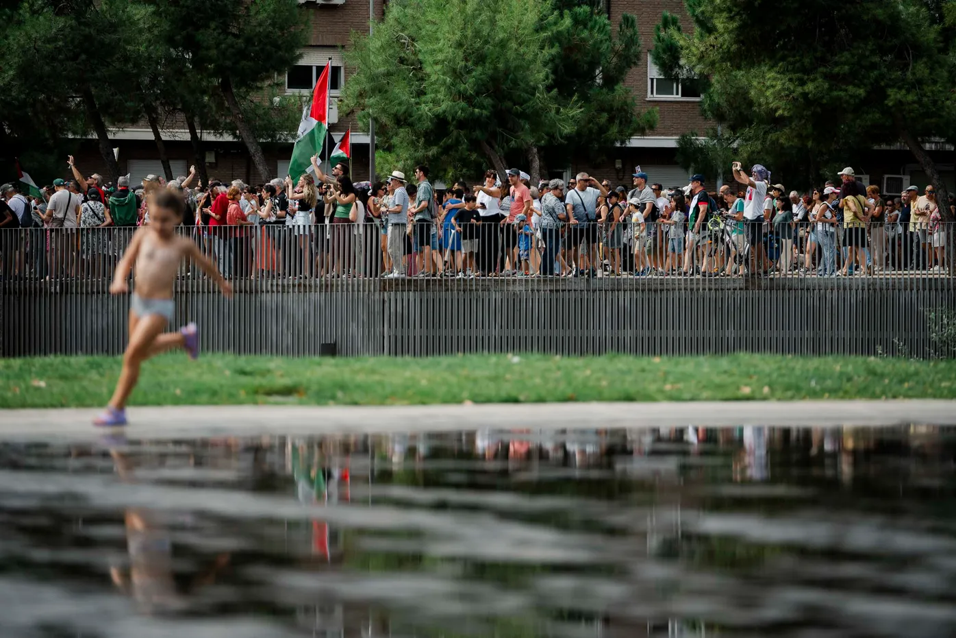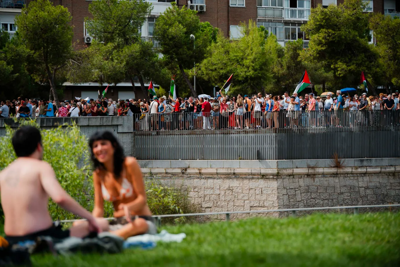 Miles de personas protestaron contra el genocidio en Palestina durante el circuito reivindicativo llevado a cabo e Madrid Rio. Madrid a 31 de agosto 2025.