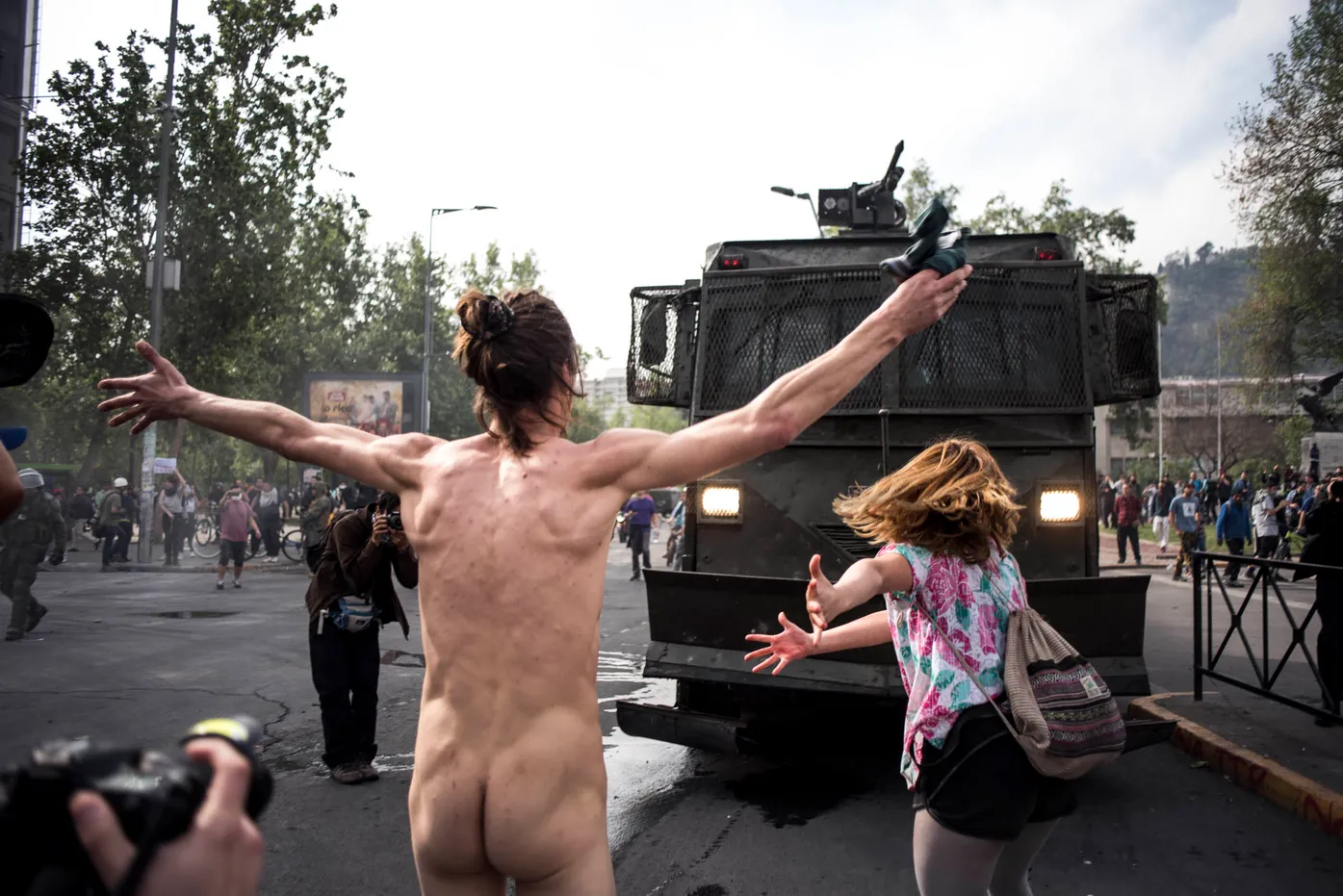 Porque la primavera, la verdadera primavera, no ha hecho más que comenzar en Chile. Un país en el que, hace hoy un año, los desaparecidos y los que intentaron hacer desaparecer sin éxito, se reencontraron, se miraron a los ojos y se reconocieron. Y bailaron juntos la cueca brava, proletaria, del octubre rojo chileno. Estas 18 fotografías fueron tomadas allí, durante aquel estallido social que comenzó el día 18. Y están plagadas de flores de fuego. Tan frescas que todavía queman.